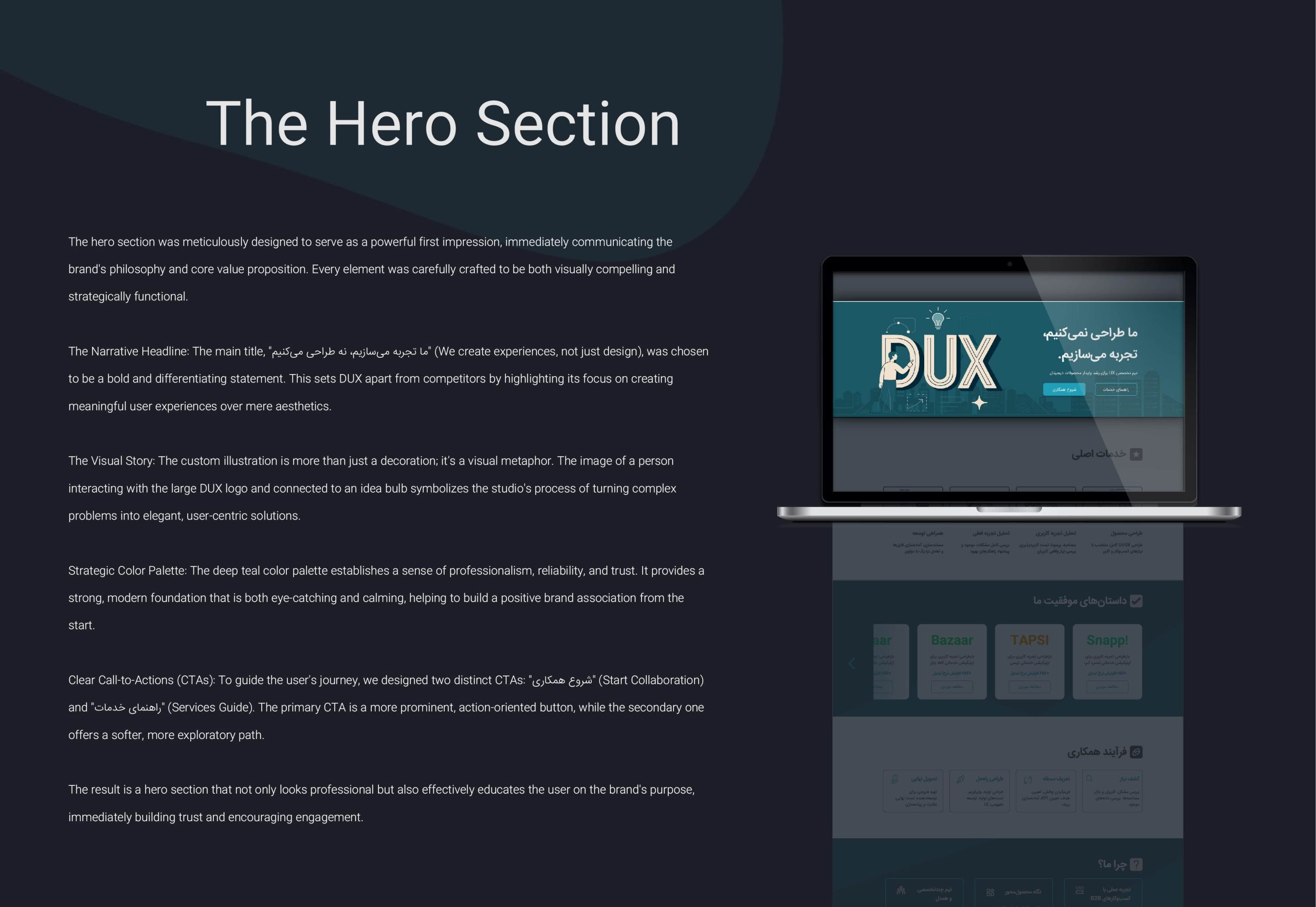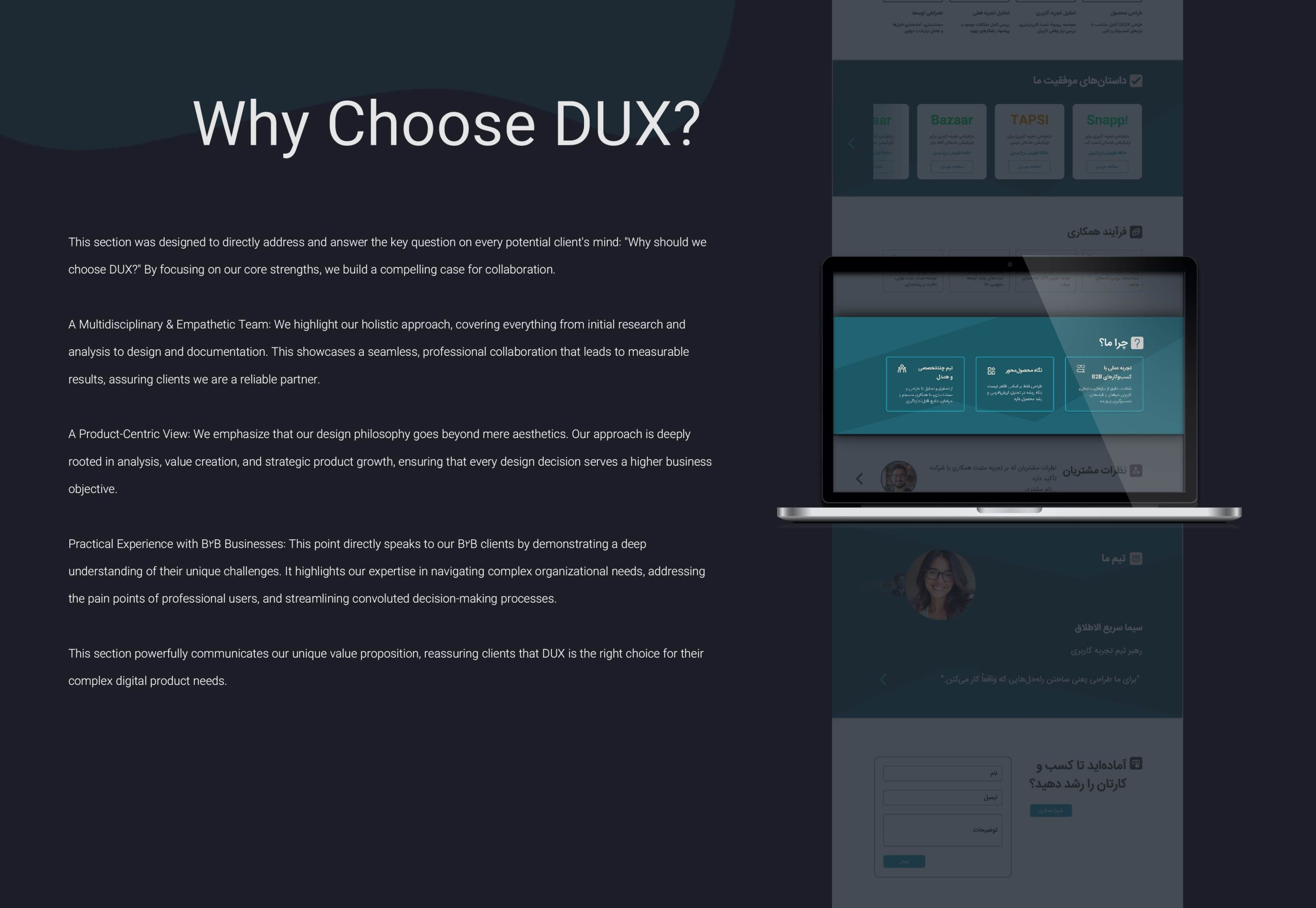 Our partnership with Dux.studio began with a shared goal: to redesign their own website to better reflect their mission and showcase their expertise.